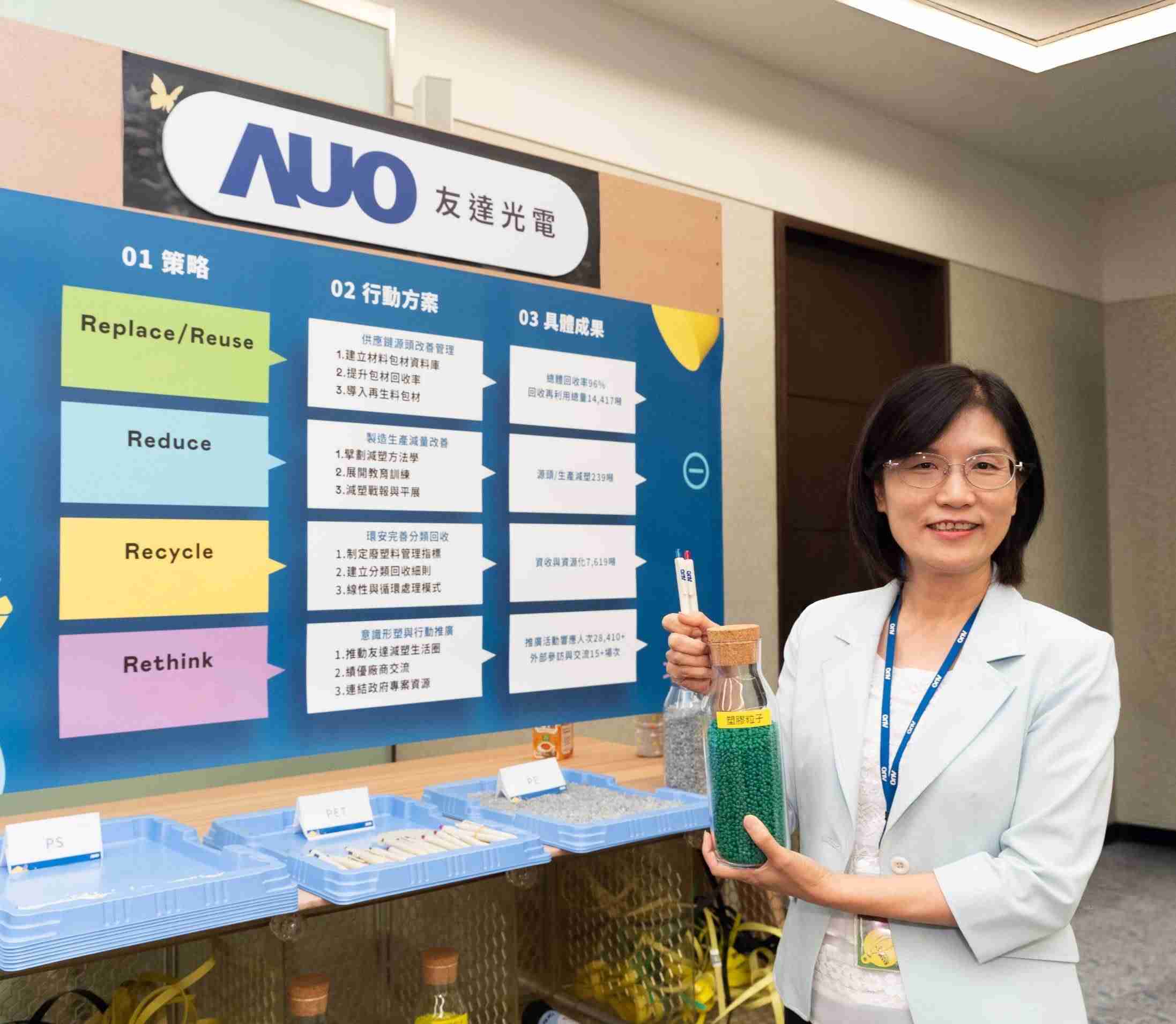 开云电子投入减塑过程中,,,,从3R+1策略展开(Recycle循环回收; Reuse物尽其用; Reduce减少使用;Rethink反思),,,并持续与多元产业伙伴合作,,,,邀请台湾默克、、、、住华科技、、、奇美实业、、、、明基材料、、、配客嘉、、统一企业、、、洁安环保工程,,,共七家厂商与开云电子连手策划首届减塑生态圈联展,,展示如何将废塑料循环再利用,,,,创新解决方案包括:塑料包材再生与循环使用、、再生塑料研发及应用、、、废塑料回收再生技术、、减塑生活提案等,,,,藉此为产业伙伴搭建交流与共学平台,,,,激发更多创新解方。。。。而开云电子贯彻循环再生的作为,,,一年来已达成塑料再制量高达8.5之成果,,当中包含将厂内废弃物再制为实用物品,,如:以回收宝特瓶再制之循环折伞、、、工厂废塑料再制之垃圾袋,,,另亦扩展到包含废纸再制之卫生纸、、、、修伐废木再制之农肥等,,让重「塑」价值的理念落实,,深植于每个人的日常。。。此次展示区规划也贯彻减塑减废精神,,,,采用可重复使用展架、、以数字显示代替一次性印刷输出物;也搭上AI潮流,,,以AI生成影片与画作,,引导与会者思索减塑重要性;同时,,,,现场也展示以塑料废弃物为媒材再制而成的艺术服装,,,,体现开云电子人「减塑即生活、、、、减塑即艺术」的精神。。。。
