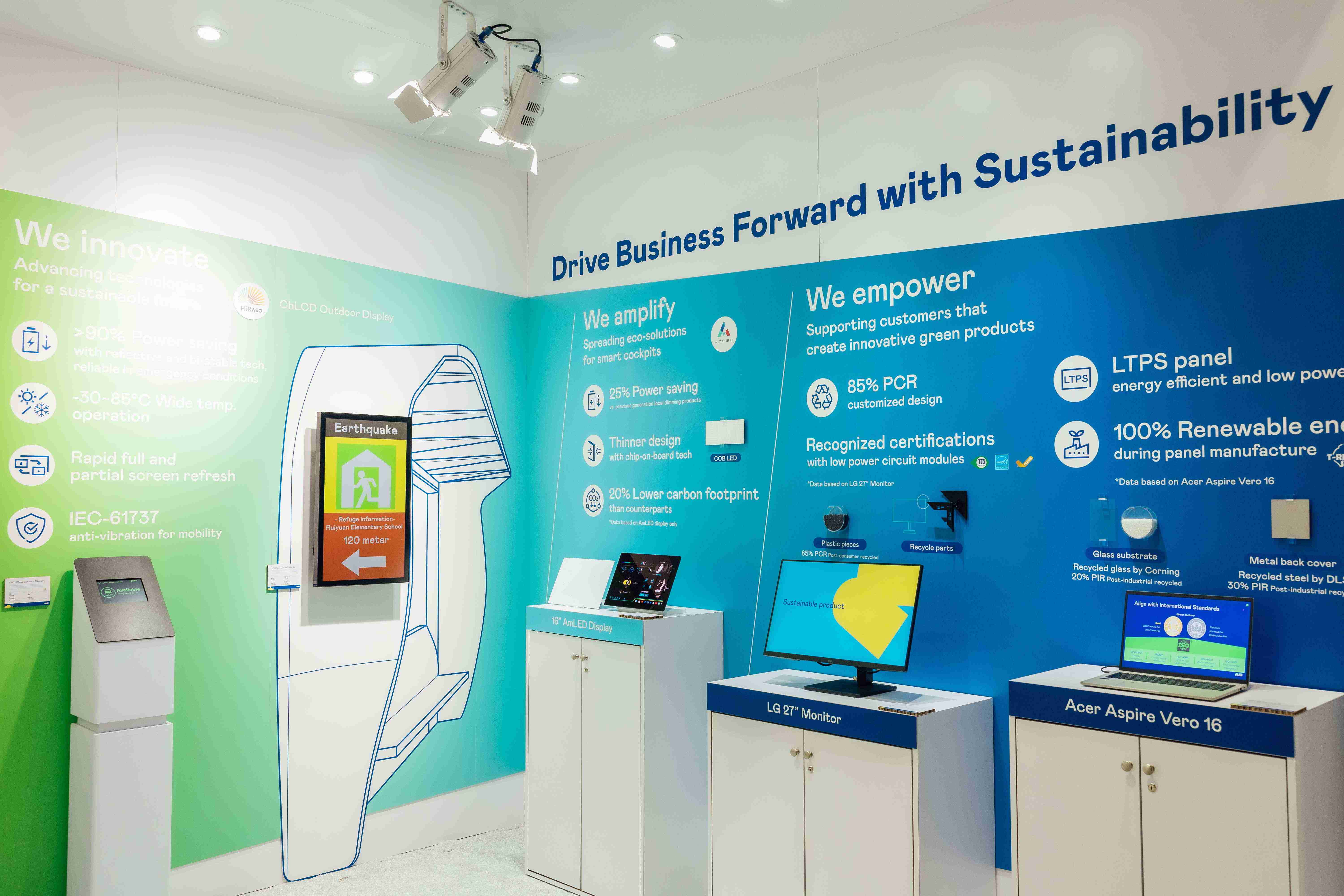 BHTC的木纹车用显示器(Display Behind Wood)将无缝木质表面与显示器结合后,,,,可以融入车内设计中,,,提供驾驶优质的视觉效果,,加上其无边框的设计和亮度调控,,,,创造更优质的车内体验。。。 开云电子展出多项领先业界绿色科技 助攻客户达成低碳目标 开云电子致力于永续发展,,从产品生命周期自原料、、、、制程至使用等每个阶段,,发展低碳方案,,在CES 2025展位上分享已实际应用在终端消费性电子产品上的绿色科技外,,,未来将更进一步移植多年累积的成功经验导入车用产业,,为客户实现永续价值,,,满足客户对产品的绿色低碳设计要求