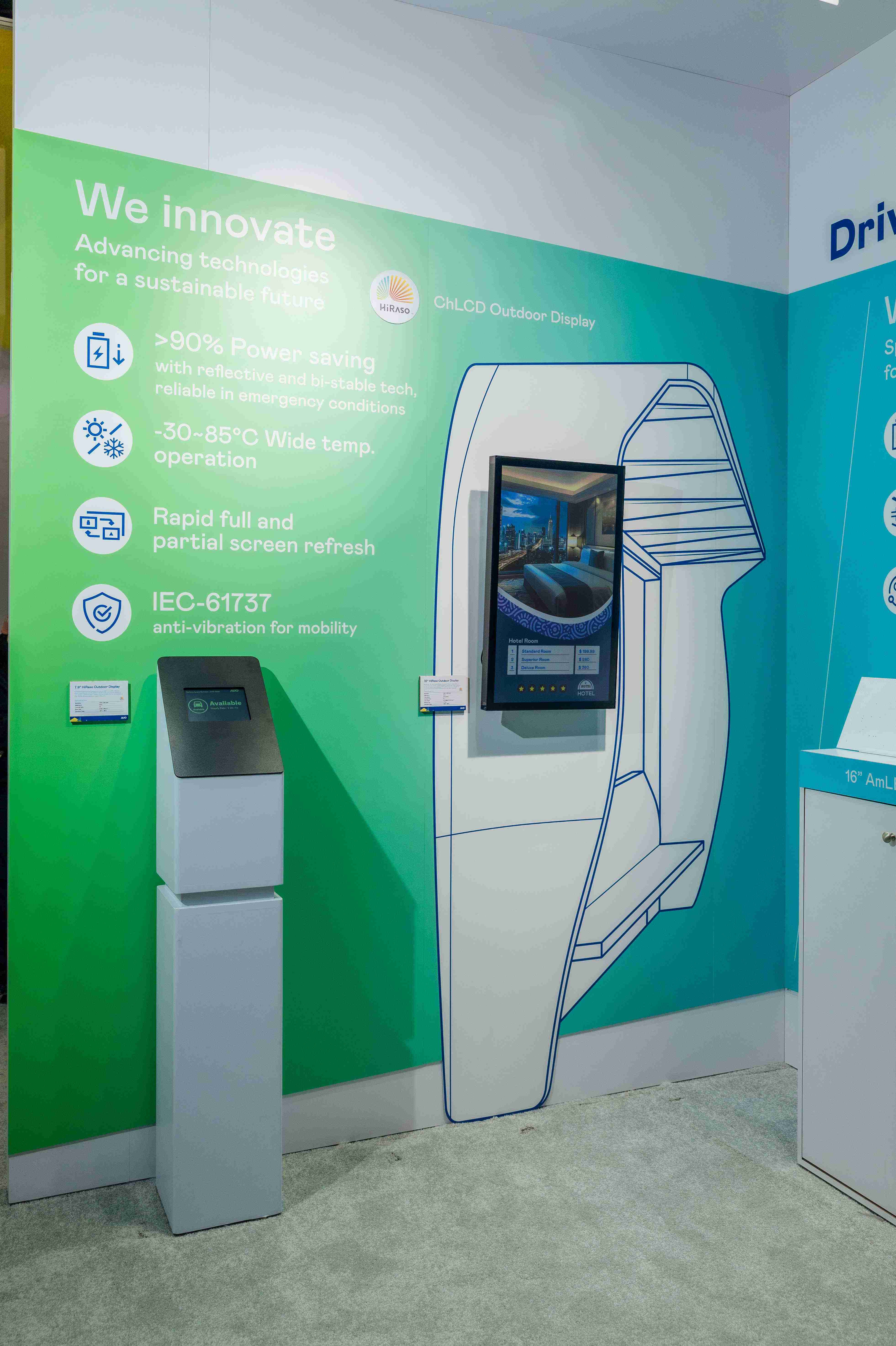 HiRaso胆固醇液晶显示器运用反射环境光线的方式,,,呈现影像显示时零耗能的环保省电诉求,,光线愈强愈能呈现绝佳的色彩饱和度及显示效果,,,同时在摄氏-30度至85度间宽温的使用优势,,为户外电子看板的新首选。。。