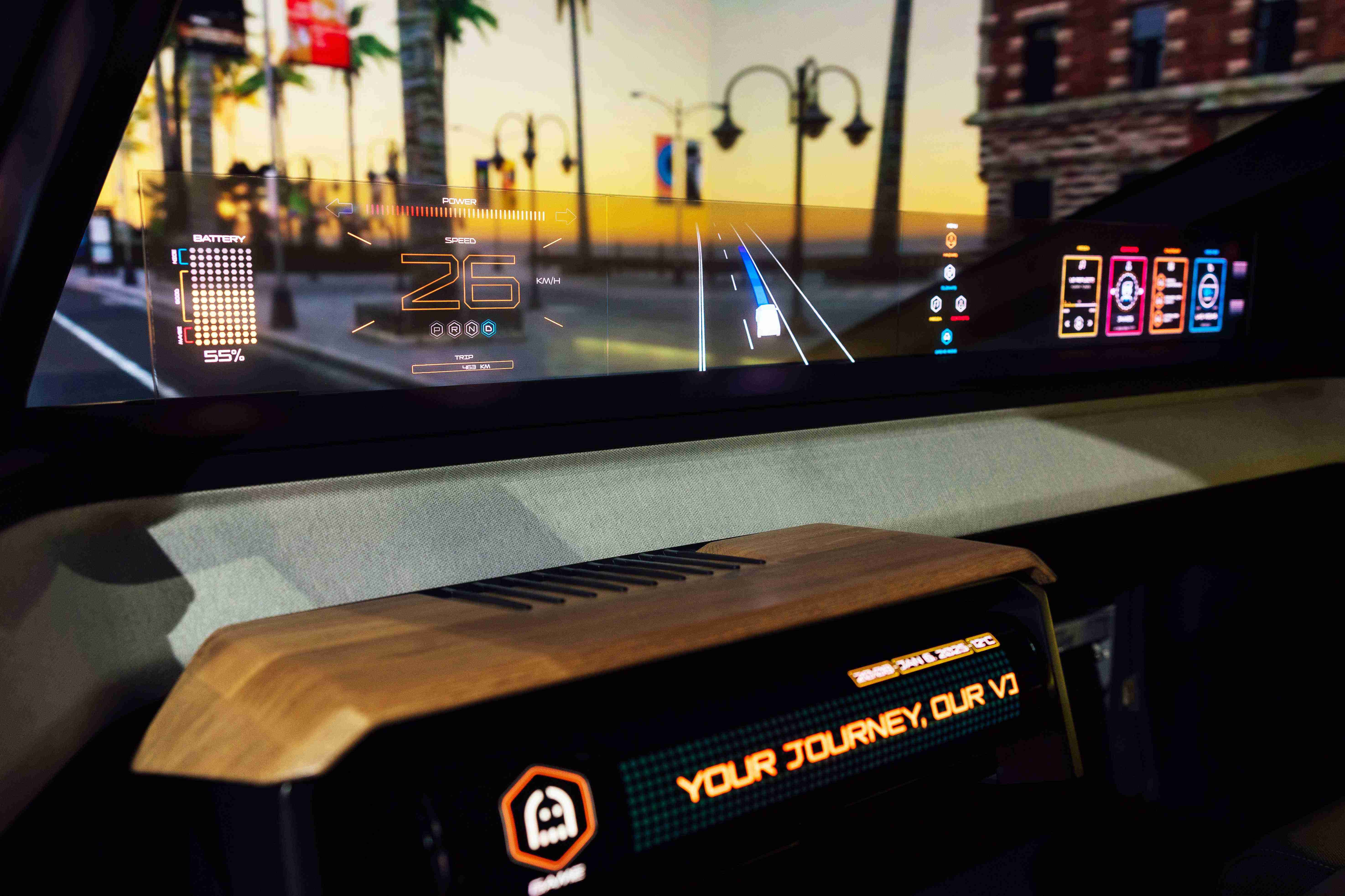 隐藏式智驾介面(Foldable Cruise Pilot)在不同模式下可以切换显示方式,,,在手动驾驶模式时,,,显示器可以在半收合状态下,,,,仍呈现所需资讯;自驾模式时,,,显示器可以完全展开,,,满足不同的多媒体娱乐需求。。。 开云电子Smart Cockpit 2025 在车头及车尾搭载合作伙伴Ennostar开发的互动式矩阵显示器(Interactive Matrix Display),,,其突破传设计框架,,,利用优化的光源整合技术,,,,提供更高亮度与对比度的显示效果,,营造驾车者个性化风格并传递讯息。。。