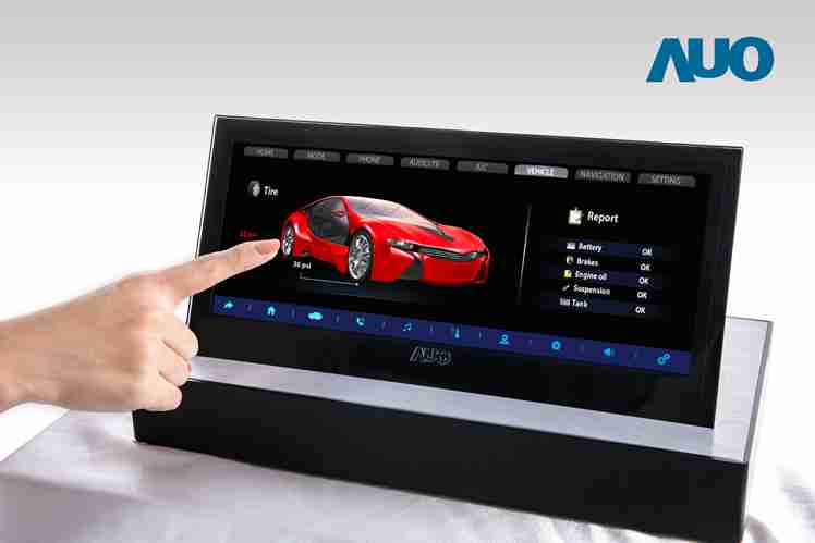 12.3 寸 Full HD LTPS 显示屏同样具备 1000 nits 高亮度,,,,搭载内嵌式触控技术,,,整合驱动与触控 IC 于显示屏制程,,,使显示屏厚度降低,,为中控台创造更多机构设计空间。。。应用于抬头显示器的 3寸 LTPS 显示屏具有高穿透率、、、、1200:1 高对比度度,,,以及 297 PPI 高画素密度。。液晶最高可耐受到 110C 的高温 (TNI) 而不液化,,在阳光高温下维持优异稳定的显示效果。。。。