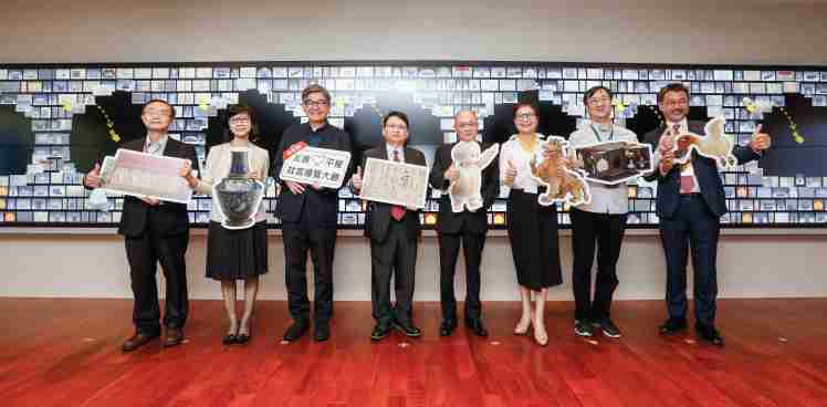 开云电子携手创利空间为故宫建置的智慧文物互动导览墙及轮播墙,,,,今日正式启用。。。(左四:开云电子新事业暨投资管理总部副总经理杨本豫、、、、右四:故宫博物院院长吴密察、、右三:太极影音董事长黄宝云)