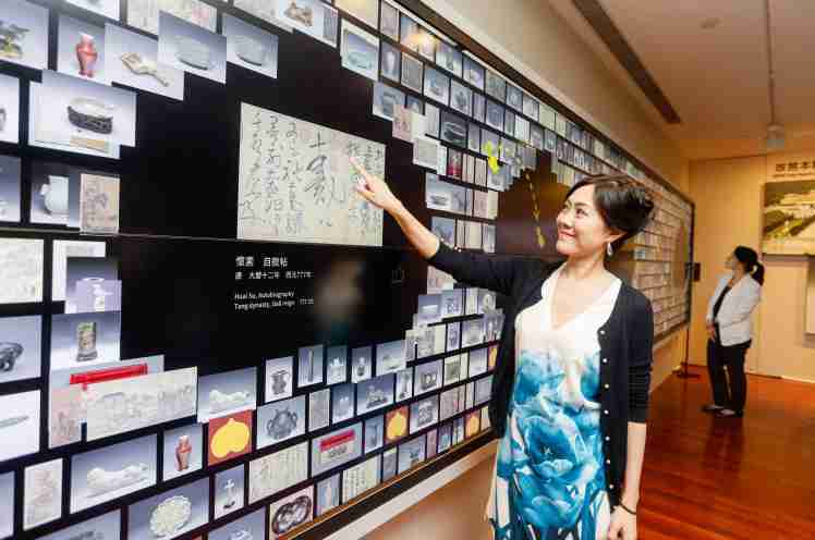 故宫智能文物互动导览墙的设计灵感源自多宝格文物,,可让多人同时透过各类互动手势浏览故宫精彩的文物图像。。