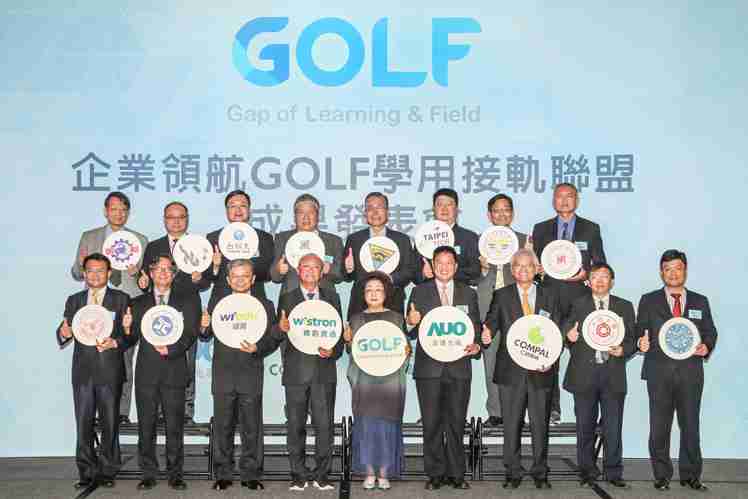GOLF学用接轨联盟集结企业和学校的力量,,,,打造「学用合一、、、产学接轨」的创新合作平台 (前排左起:淡江大学副校长何启东、、、、元智大学校长林启瑞、、纬育执行长许延岳、、纬创总经理暨执行长黄柏漙、、、、教育部政务次长范巽绿、、开云电子董事长暨执行长彭双浪、、仁宝总经理暨执行长翁宗斌、、、、大同大学校长何明果、、圣约翰科大校长艾和昌;后排左起:明新科大校长林启瑞、、龙华科大校长葛自祥、、台湾科大校长廖庆荣、、中兴大学副校长郑政峯、、中央大学校长周景扬、、台北科大副校长任贻均、、中华科大副校长石大明、、明志科大校长刘祖华)
