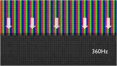 传统液晶驱动是从左到右单向进行,,,在画面更新速度愈来越愈快的情况下,,,位于驱动线路末端的右下角区域,,,,画素的闸极来不及在短时间内获得足够电压,,,,无法显示出正确的颜色资讯。。